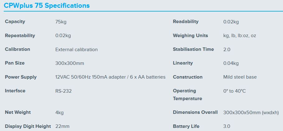 Weighing Scales, Digital, CPWplus Series, 75kg x 20g